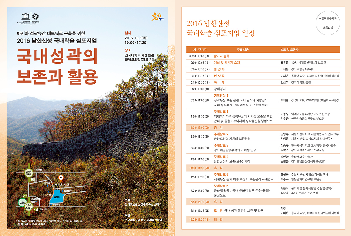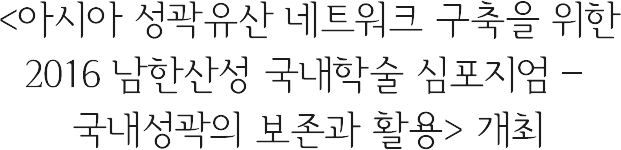2016 남한산성 국내학술심포지엄이 <국내성곽의 보존과 활용>을 주제로 11월 3일 개최된다.
