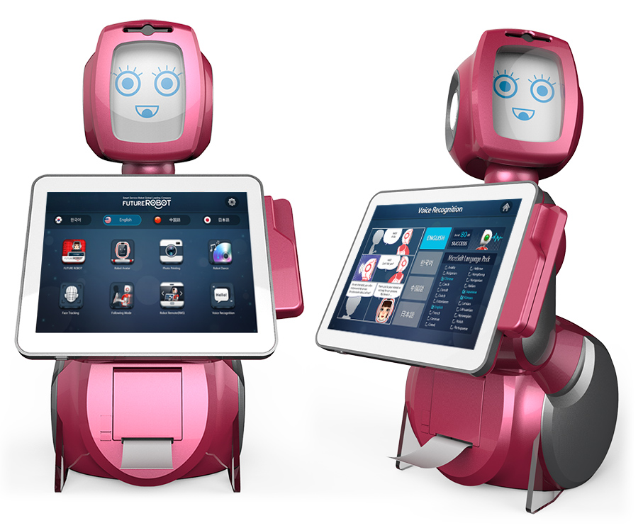 퓨로-Desk는 핀테크와 스마트 서비스 로봇 기술을 결합한 제품이다. 음식점, 유통점 등에 설치돼 고객들에게 정보를 제공하고 결제 업무도 도와준다. CRM(고객관계관리) 업무에도 활용 가능하다.