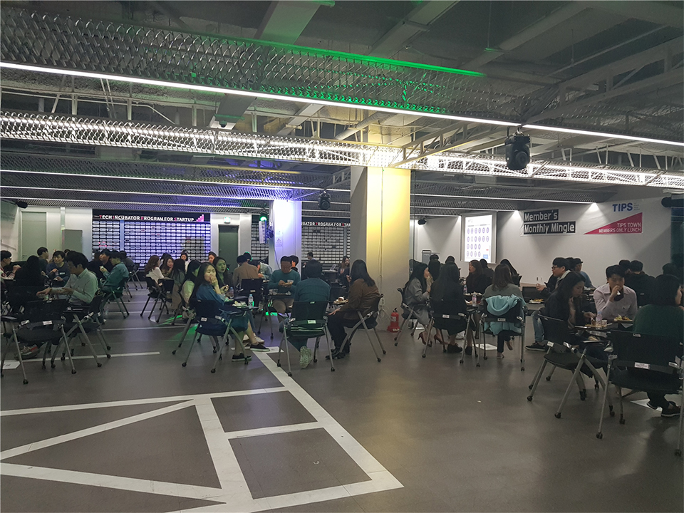 팁스타운 입주사 간의 네트워킹을 위한 프로그램이다. 원활한 네트워킹을 위해 점심식사를 제공하며, 참여 활성화를 위해 식사 후 경품 추첨 프로그램이 진행된다.