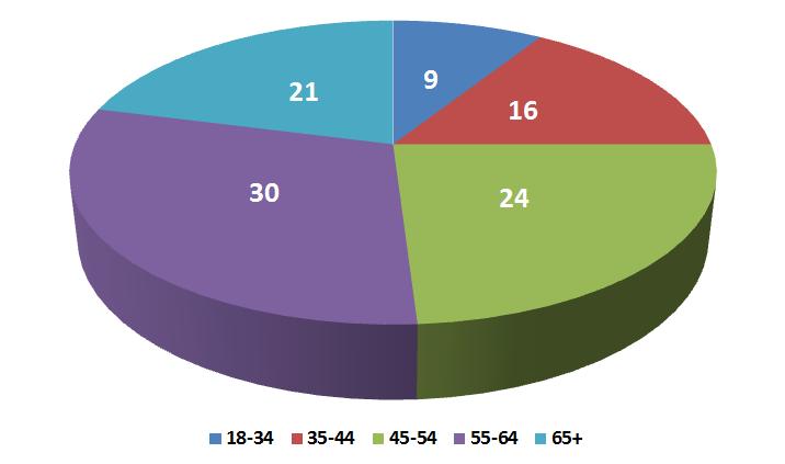 여유자금을 가장 많이 보유하고 있을 것으로 예상되는 45세 이상이 75%로 가장 높은 비중을 차지하고 있으며, 25%의 비중으로 18세-44세의 젊은 엔젤투자자들이 분포하고 있다.