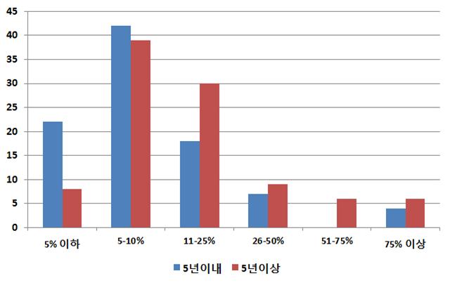 < 엔젤투자 경험기간별 투자가능자산 내 엔젤투자 비중 >