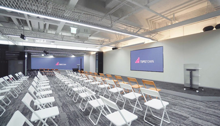 팁스타운에서는 네트워킹 행사 등을 진행할 수 있는 대규모 행사공간과 비대면 콘텐츠 촬영 및 편집을 위한 스튜디오가 조성되어 있습니다.