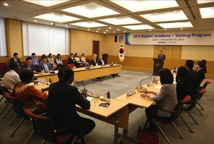 한국농촌경제연구원은 6월 1일 연구원 대회의실에서 KAPEX Academy 장기연수 프로그램 입교식을 개최했다. 지난해에 이어 제 2차 시범사업으로 실시되는 이번 장기연수 프로그램은 르완다, 파라과이, 필리핀 등 개도국 농업·농촌 분야 공무원 9명을 대상으로 6개월(2015.6.1.~11.27)간 진행될 예정이다.