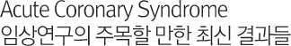 New generation drug-eluting stent (DES)의 삽입 이후에는 필수적인 dual antiplatelet therapy (DAPT)의 기간도 짧으리라 예견되어 왔다. 최근 발표된 ITALIC trial의 결과에 의하면 Xience V DES가 삽입된 2,031명의 환자 중에서 DAPT를 12개월 유지한 군과 6개월 유지한 군에서 primary composite endpoint인 death, MI, TVR, stroke 및 major bleeding에 있어 유의한 차이를 보이지 않은 것으로 나타났으며 이는 연구에 포함된 44%의 ACS 환자들에서도 마찬가지였다.4 DES 삽입 이후 DAPT의 필수기간 단축도 기대가 된다.