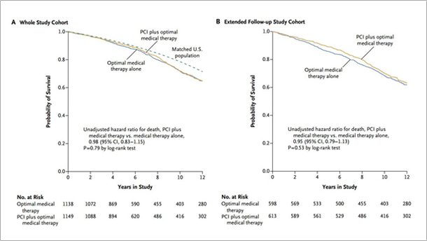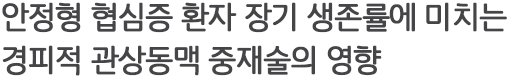 안정형 협심증 (stable coronary artery disease, SCAD) 환자의 치료에서 적절한 약물 치료 (Optimal medical therapy, OMT) 와 경피적 관상동맥 중재시술 (percutaneous coronary intervention, PCI) 치료간 생존률에 미치는 영향은 여전히 논란이 되고 있다.