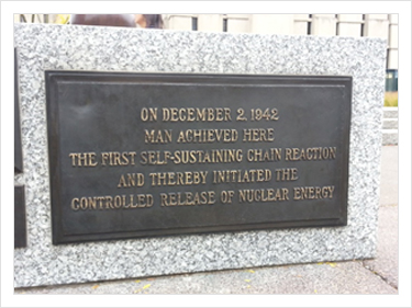 ▲인류가 처음으로 1942년 12월에 핵실험을 했다는 표시를 비석으로 남겨 놓았고