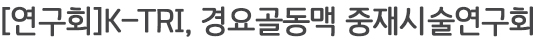 2016 K-TRI Live Meeting "Why Not TRI?"이 2016년 3월 25일-26일(금-토) KT&G 상상마당 춘천 스테이호텔과 춘천성심병원에서 개최됩니다. 한국과 일본의 경요골동맥 중재시술에 관한 live와 토론의 장이 될 K-TRI Live 2016에 회원 여러분을 초청하오니 많은 참석 바랍니다. 흥미 있는 강의에 더불어 증례 발표가 있을 예정이며 우수증례에 대해서는 시상이 있을 예정입니다.
