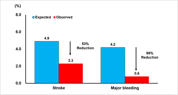 PROTECT-AF 등의 연구에서는 WATCHMAN의 사용이 와파린보다 뇌경색, 전신색전, 심인성 사망률을 낮출 수 있다는 보고가 소개되고 있다. 그리고 Amplatzer Cardiac plug (ACP)에 대한 연구도 꾸준히 진행되고 있으며, 유럽의 레지스트리 연구에 따르면 숙련도에 따른 다소의 차이가 있을 수 있으나 전신 색전증 (systemic thromboembolism) 및 대출혈의 위험을 각각 59%, 61%로 낮추는 효과가 있다는 결과를 보여주고 있다. 뇌경색에 대한 여러 연구를 바탕으로 현재 유럽 심장 학회는 뇌경색의 위험을 동반하고 있으나 장기적 항응고요법이 어려운 비판막성 심방세동 환자에서 좌심방이 폐쇄술을 Class IIb로 권고하고 있는데, 이 또한 최근 여러 임상 연구 결과들을 바탕으로 권고기준이 상향될 가능성도 있다. 더불어 최근 국내에서 96 명의 환자를 통한 다기관 연구에서도 외국에서와 비슷하게 53 %의 뇌경색 감소와 86 %의 대출혈 감소 효과를 보고함을 통해 한국인에서도 비슷한 효과를 가질 수 있음을 입증하였다 또한 최근 경제성 분석 자료를 보면 LAA occlusion의 경우 초기 비용은 높지만 NOAC은 5년, 와파린은 10년이 지나면 보다 비용 경제적임을 알 수 있다. 여러 근거를 토대로 국내에서도 출혈 고위험군 비판막성 심방세동 환자에서 좌심방이 폐쇄술의 빈도가 늘어날 것으로 판단된다.