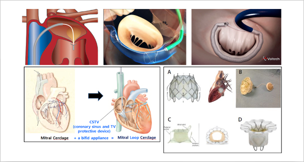 Figure 1, 좌상단 부터 MiraClip, Carillon, Cardioband, Mitral cerclage, percutaneous mitral valve