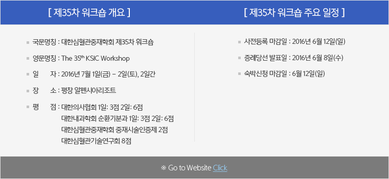 4월 집행부가 바뀌고 맞이하는 첫 학술대회인 제35차 워크숍을 앞두고 있습니다. 이번 워크숍은 MAIN ARENA와 SYMPOSIUM ARENA의 2개의 회의장에서 2일동안 거행됩니다. 급변하는 심혈관중재학의 최근 이슈들을 공유하고 미래를 전망한 새로운 주제를 검토하는 세션을 마련하였습니다.