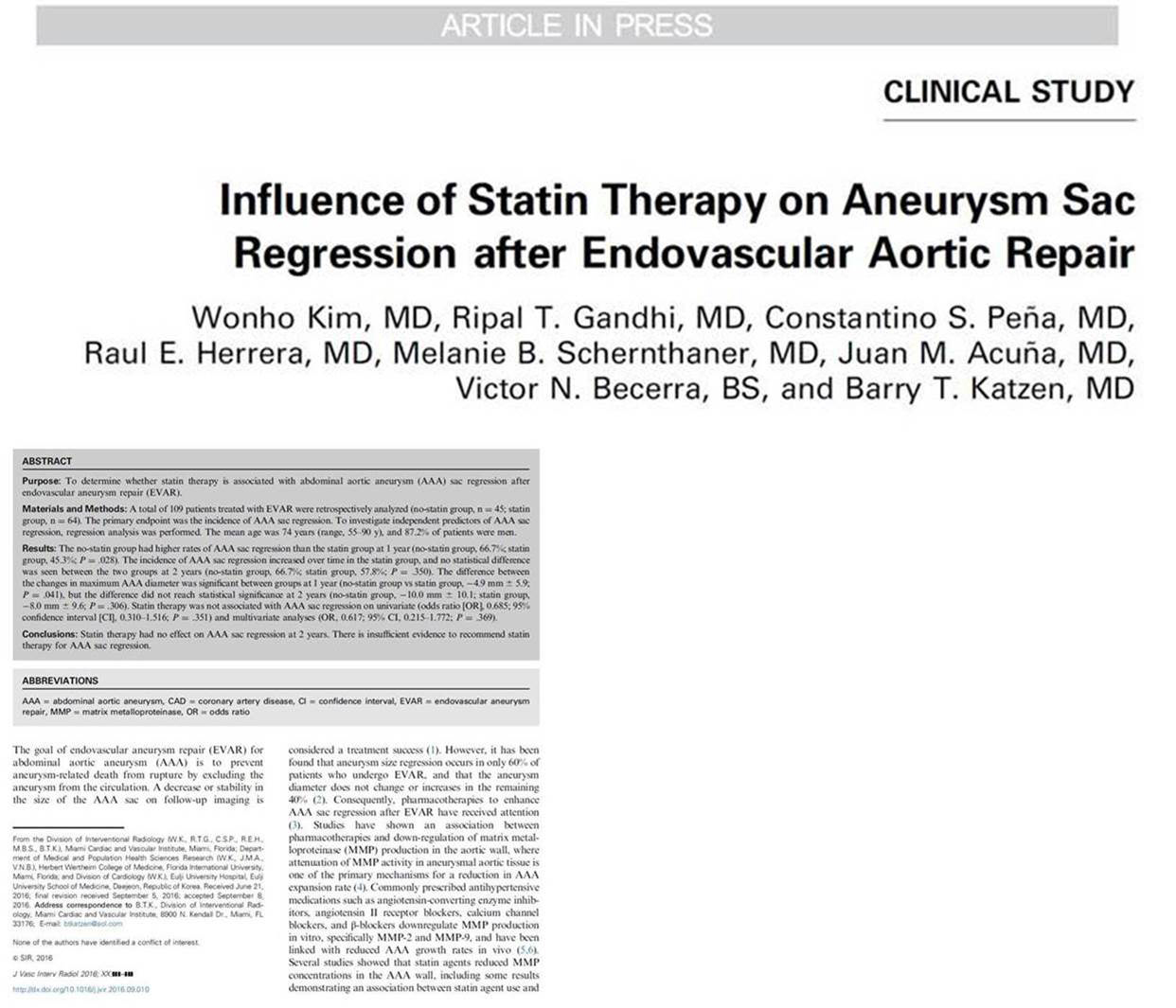 그림 1. MCVI에서 연수하며 처음 발표된 논문입니다. 미국에 도착한지 약 7개월 후에 첫 논문이 Journal of Vascular Interventional Radiology (JVIR)에 합격되었습니다. 교신 저자인 Barry T. Katzen 선생님께서 축하해주시던 일이 생각납니다.