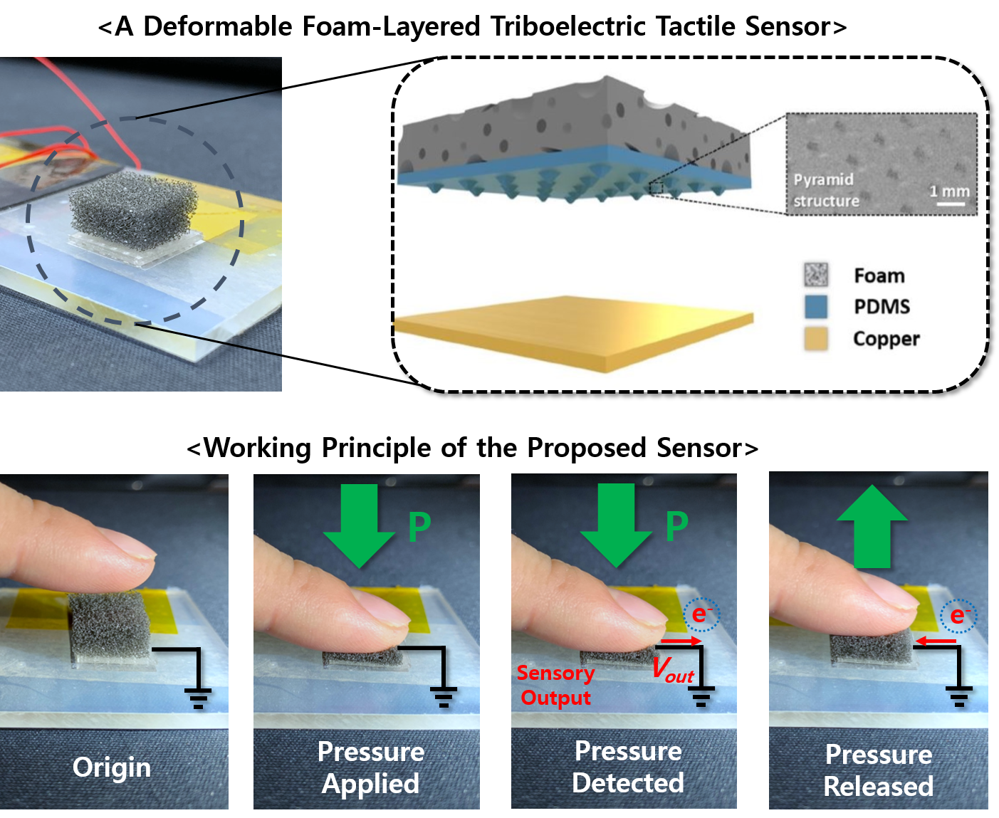 전원 없이 작동할 수 있는, 마찰전기(Triboelectric) 기반 자가 동력 터치 센서 소자를 개발하였음.
