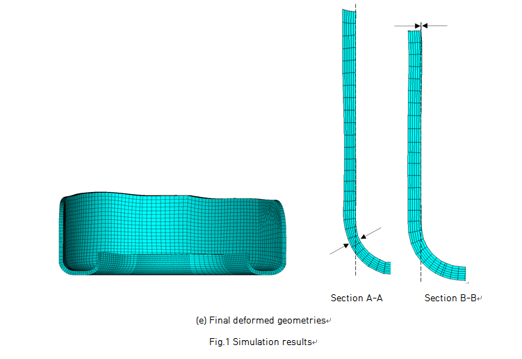 두께감소율과 스프링백 양에 대한 공정해석 예측 결과와 실험 결과는 잘 일치하였으며, 제시된 결과에 대한 타당성은 확인되었다.