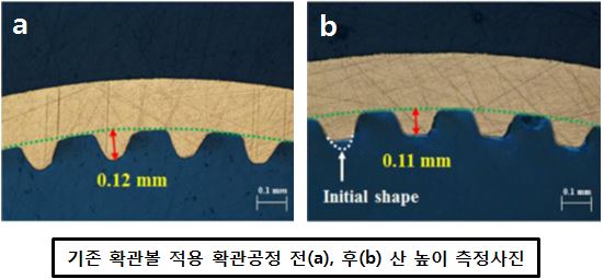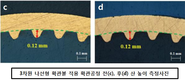 핀-튜브 확관실험 결과, 관 내부의 그루브 높이 감소율 0%대로 기존 공정대비 획기적 개선