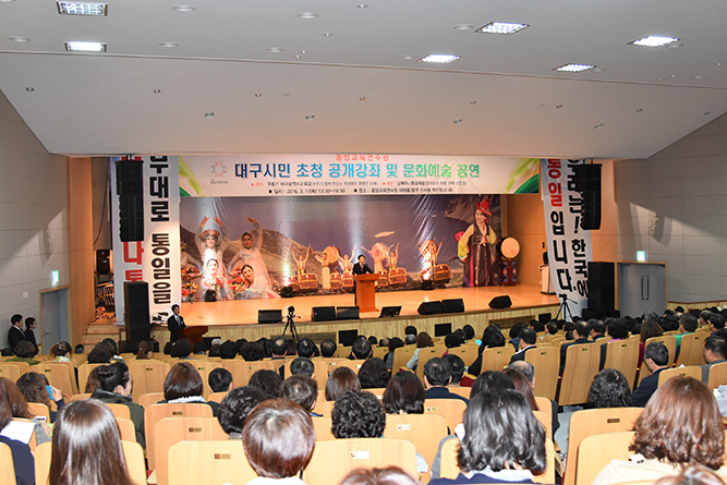 특히 이번 공개강좌 1, 2부로 나눠 진행되며 1부는 남북하나통일예술단을 초청하여 큰북 공연, 전통무용 등 다채로운 문화예술공연이 진행될 예정이고 2부는 우동기 대구광역시 교육감을 초빙하여 “모두가 함께 만드는 학생들의 행복한 미래”를 주제로 특강이 진행될 예정이다.