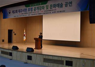 | ▶ | 중앙교육연수원은 작년 10월 연수원 대구 이전을 계기로 대구지역사회와 유대강화를 위해 올해 총 4차례의 공개강좌를 실시할 계획이며, 이번이 두 번째 행사로 대구시민들과 연수생 등 약 300명이 참석하였다. |