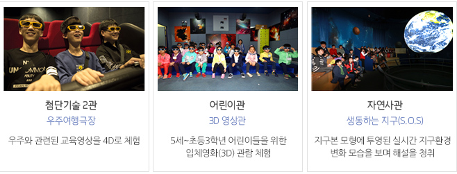 지난 4월부턴 학교나 다양한 기관에서도 과천과학관의 체험전시물을 미리 예약해 이용해 볼 수 있는 예약시스템이 마련되었는데요. 첨단2관 우주여행극장, 어린이관 3D 영상관, 자연사관 생동하는 지구 등 3가지 체험물을 30일 전부터 과천과학관 홈페이지에서 온라인 예약으로 신청할 수 있어요. 단체관람을 앞두고 계신다면 지금! 온라인 예약을 이용해 보세요. 볼거리, 체험거리가 풍부한 과천과학관은 언제나 여러분을 기다리고 있답니다.