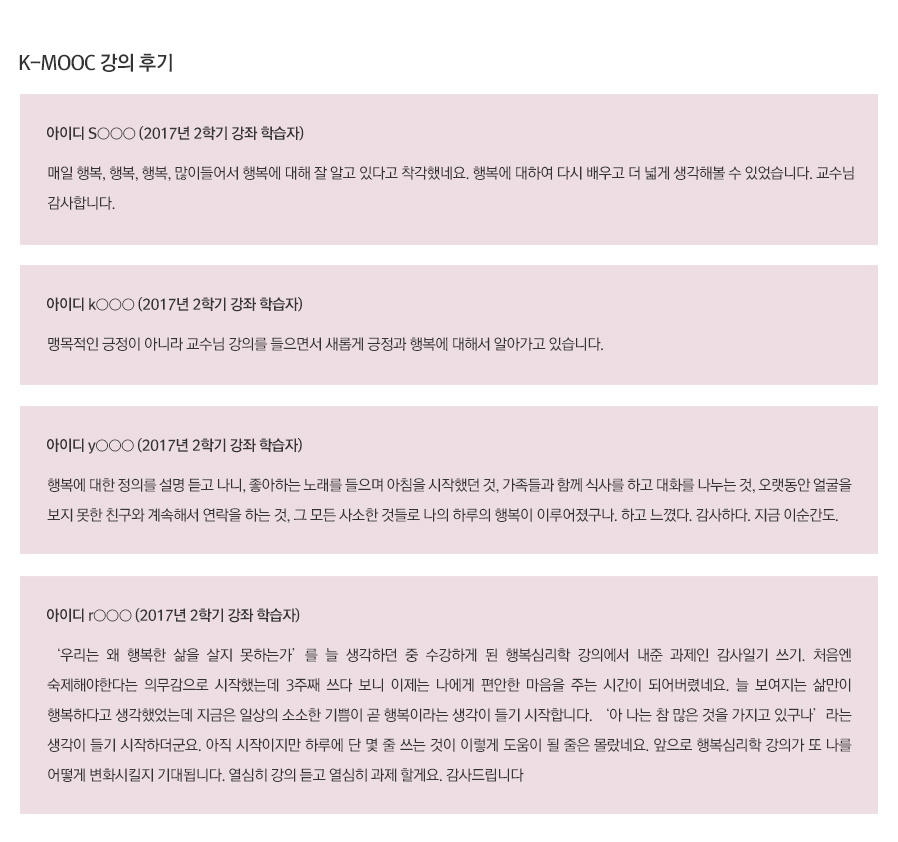 행복심리학 K-MOOC 2018학년도 1학기 개강(2018. 3. 5)