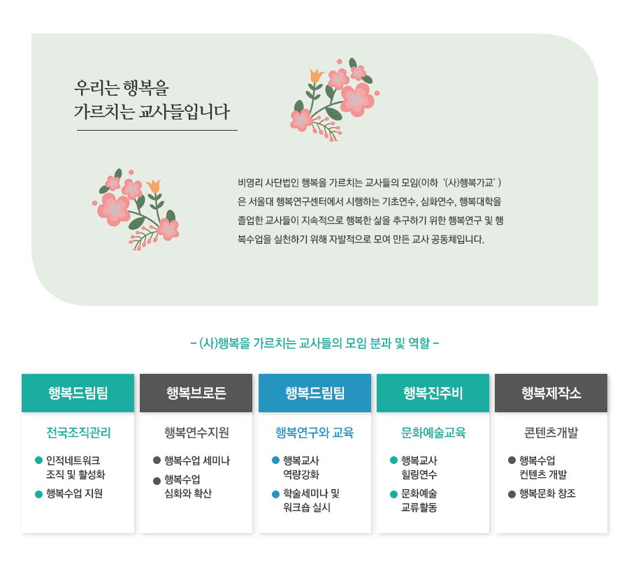 | 평생 회원 | 행복수업 기초·심화 연수를 이수하거나 교사행복대학을 졸업하고 평생회비 (30만원)를 납부하신분 |