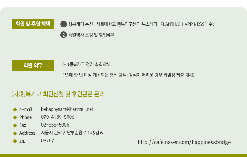 | 특별 회원 | 행복수업의 연구와 발전을 위해 소정의 후원금을 기탁하신 분 |