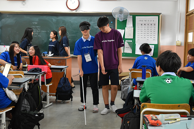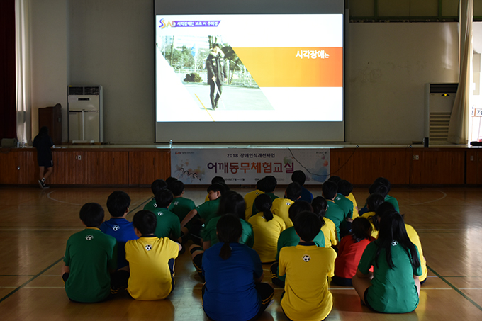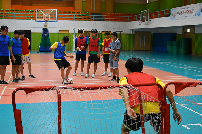 A total of 4 ‘shoulder to shoulder experience classes’ were held this July at Youngwon Middle School, Songgok High School, Sindobong Middle School, and the High School Attached to College of Education, Dongguk University. We expect that after the programs have been conducted, the perception of the students on the differently-abled will improve as they come to understand more about the blind and also learn that the differently-abled can also enjoy sports through the blind soccer experience.