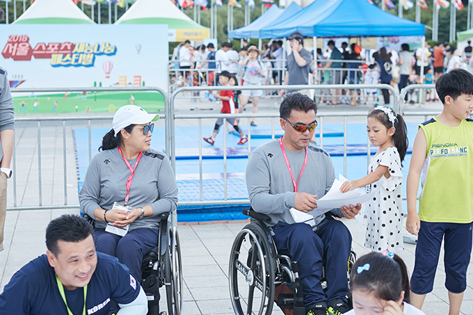 In this event, we provided stations where a total of 16 sports including 3 differently-able events(wheelchair basketball, wheelchair ping pong, wheelchair curling) and 13 non-differently-able events(archery, boxing, cycling, gymnastics, soccer, handball, triathlon, rowing, taekwondo, shooting, billiards, weightlifting, inline skating) could be experienced firsthand.